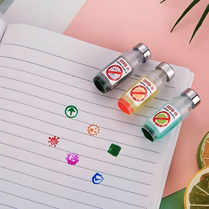 Stabilo forme seringue, avec 3 fonctions " stabio, tampon, surligneur dessin " , très jolie et unique.