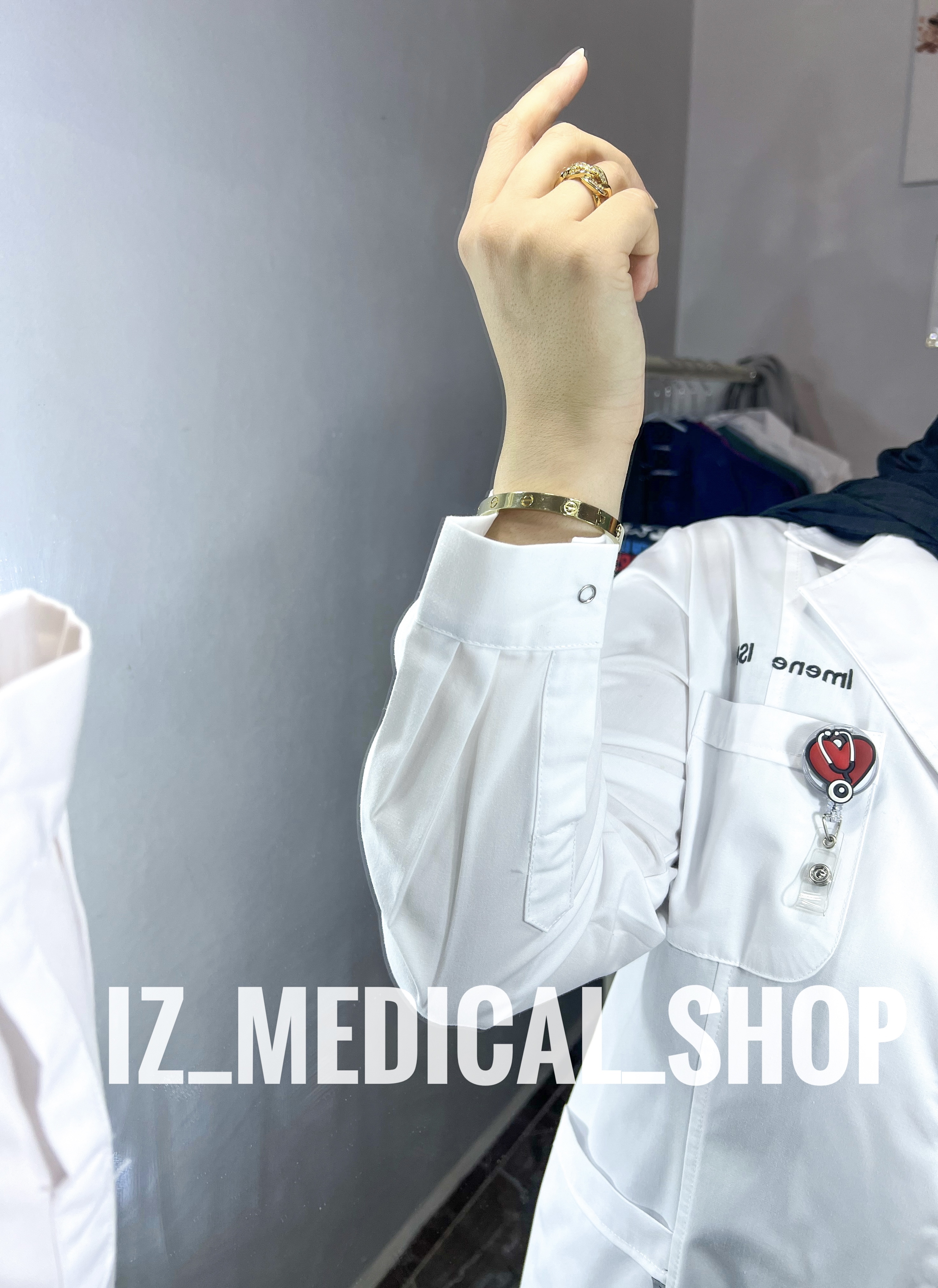 Blouse médicale 100% importation, désigne peu évasé , avec tiktak , 3 poches et des pinses au niveau des poignées . Le tissu 1000% anti-bouloches, défroissant et anti-taches , superbe qualité .