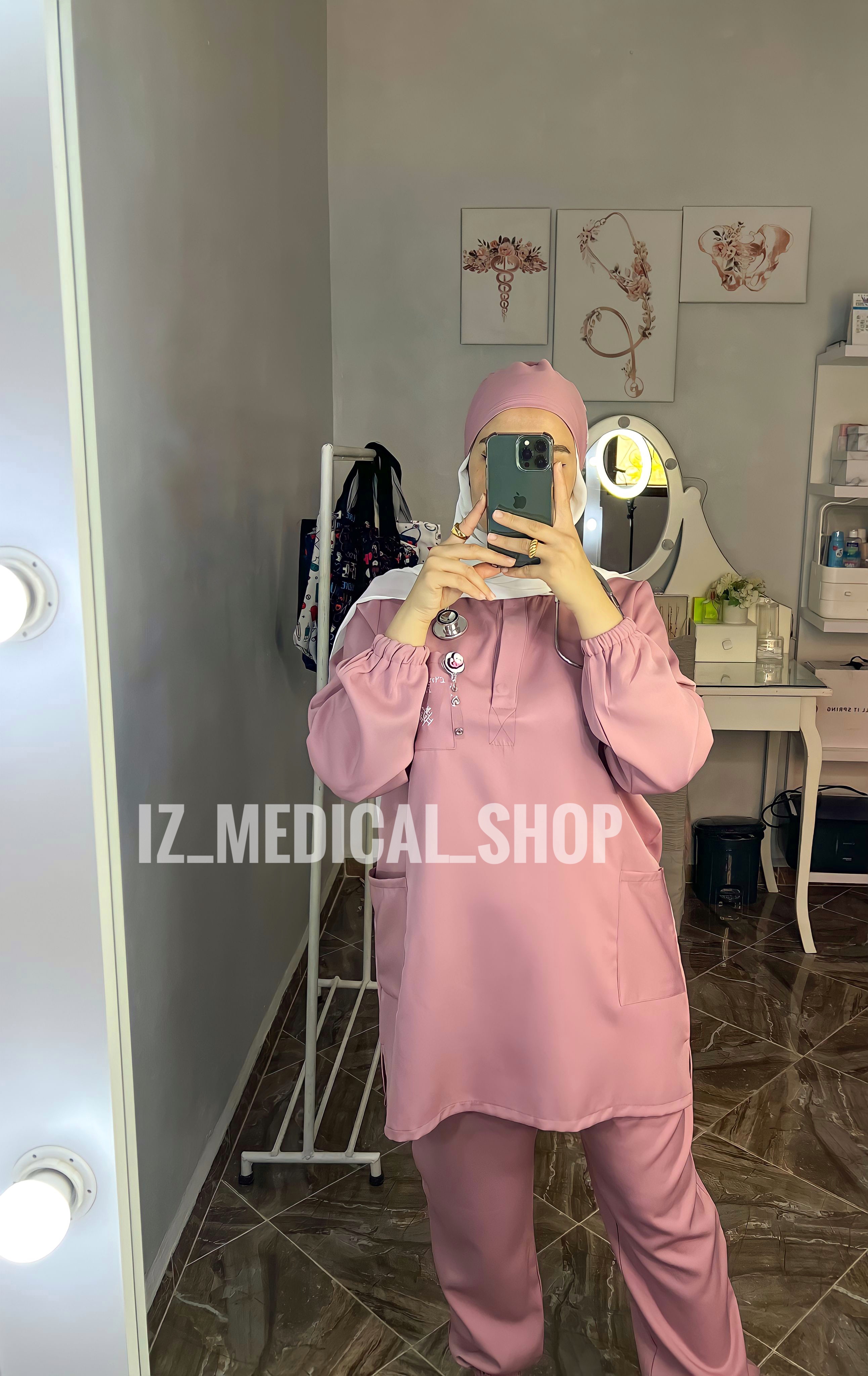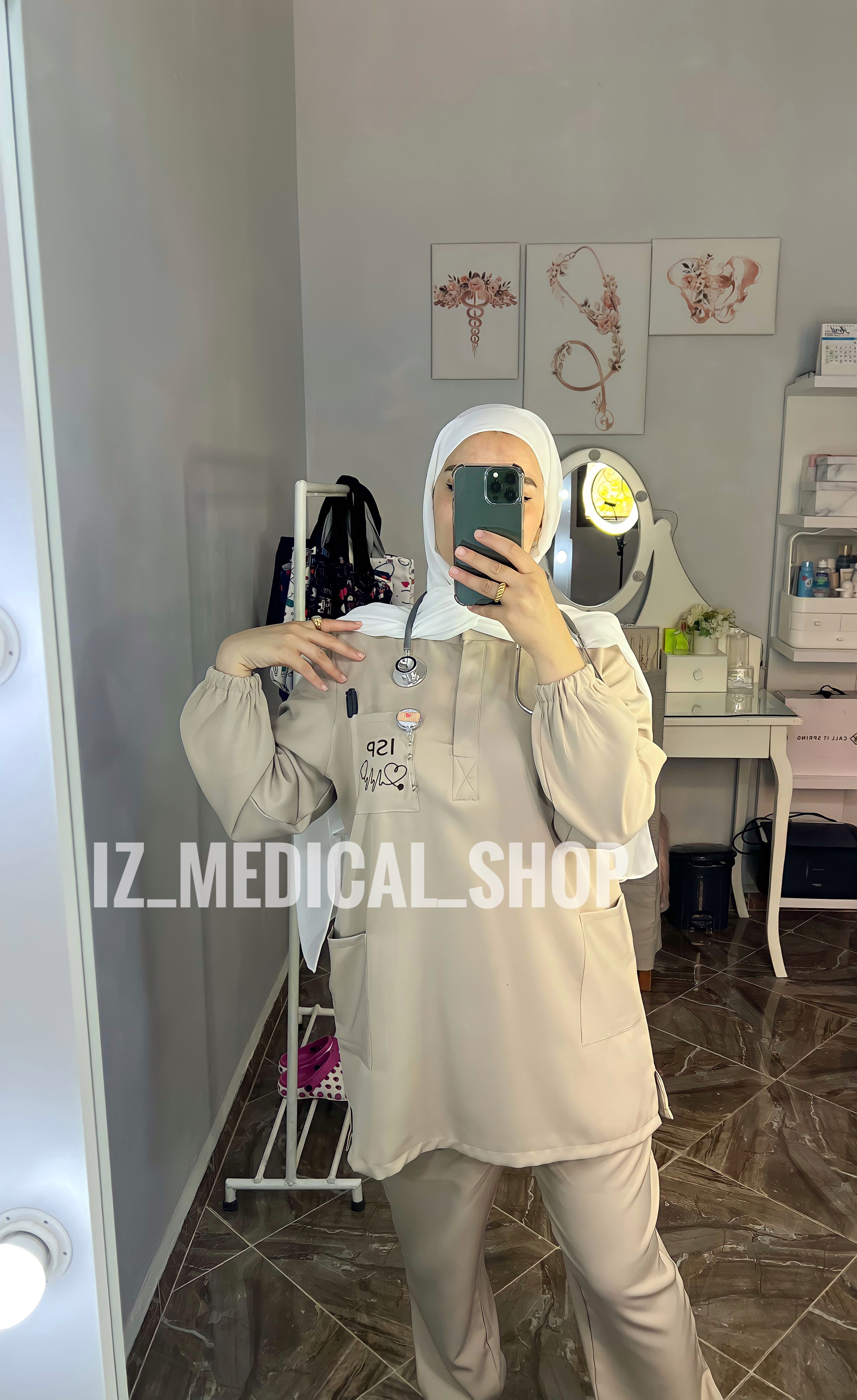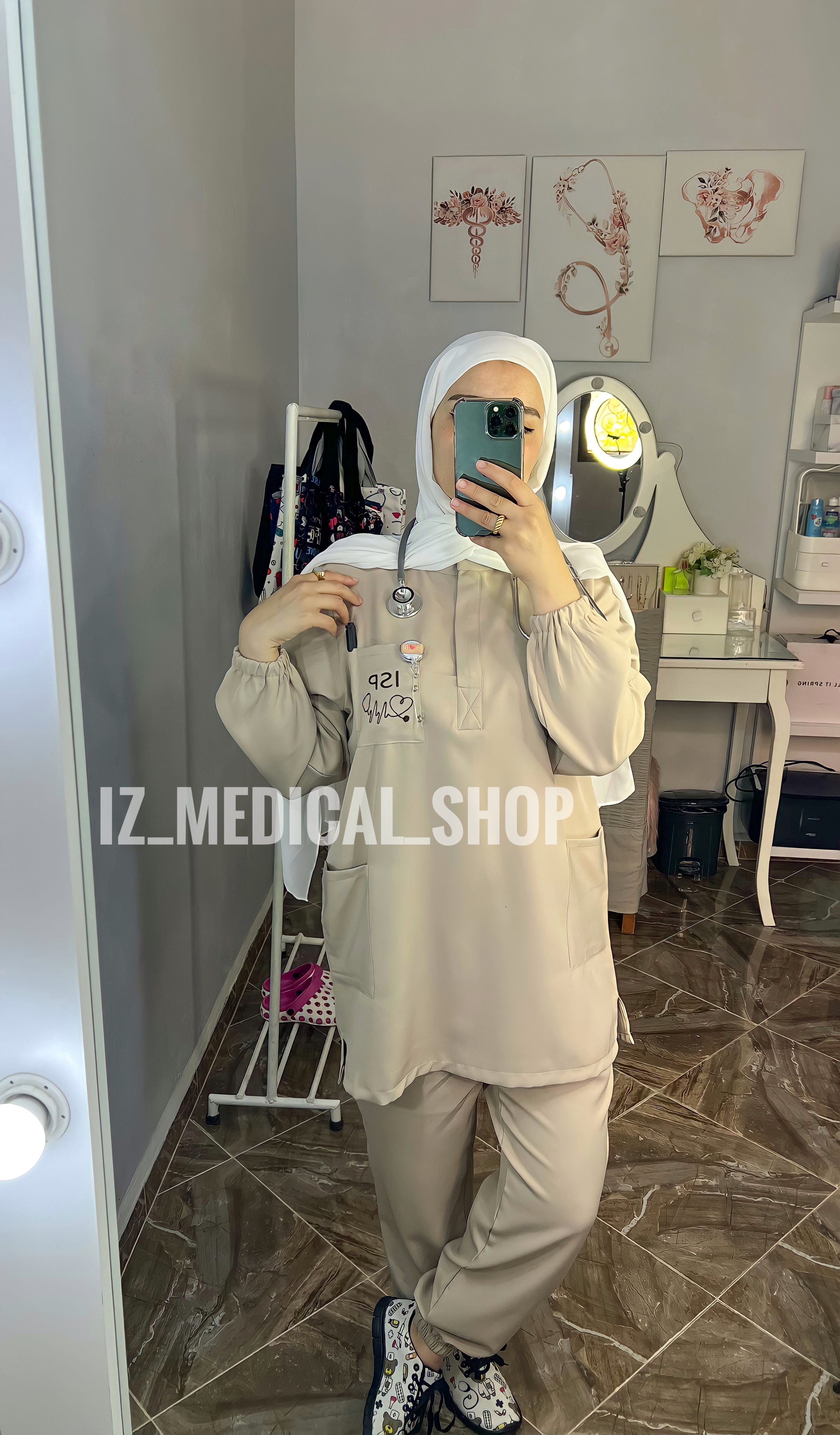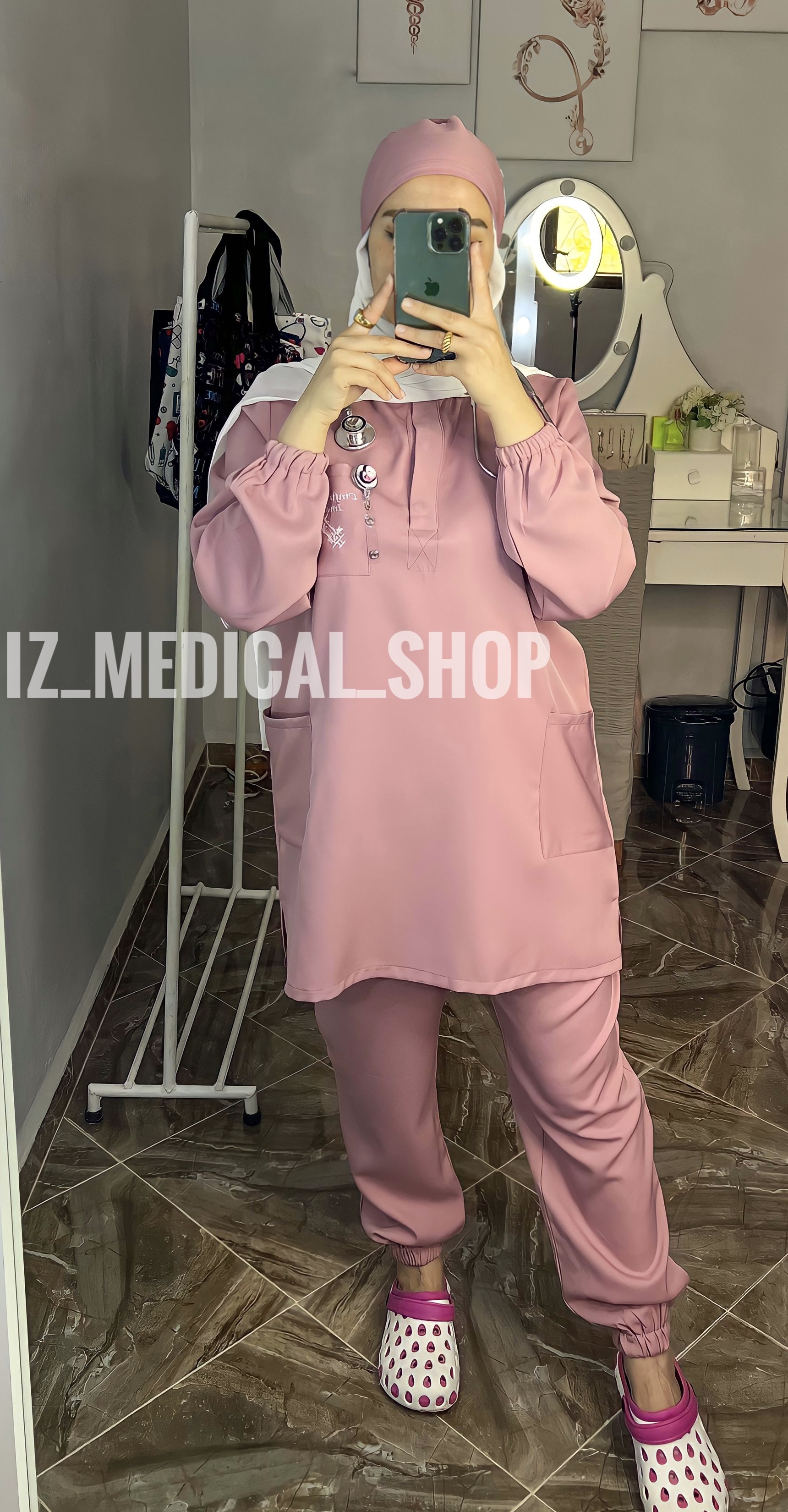 Tenue médicale de la haute gamme ,très confortable pour travailler au milieu hospitalier, avec un tissu anti bouloches , un haut forme droite avec 3 poches , col bateau , et un élastique au niveau des poignets . Le pantalon super fluide forme droite avec élastique au niveau des pieds . La personnalisation est toujours disponible à votre choix . La longueur standard du haut : 85cm Possibilité de modifier la longueur : sus genoux , sous genoux ou bien jusqu'au pieds.