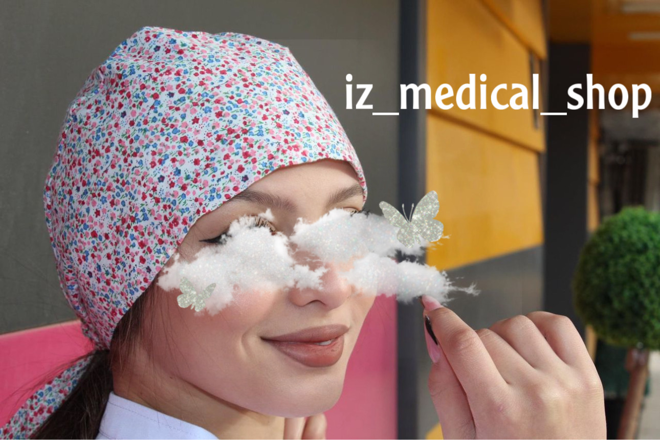 Calot médical imprimé importation , jolie motifs , coton 100% , couvre tous les cheveux avec une plaque en tissu absorbant de sueurs sus le front .
